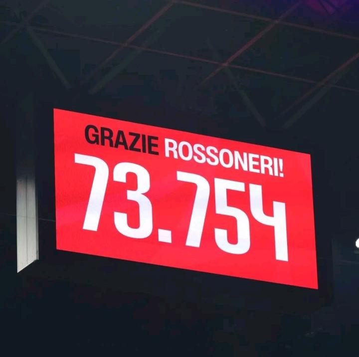 座无虚席,米兰2-1那不勒斯共有73754名球迷现场观赛